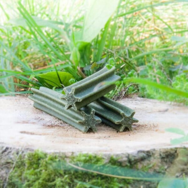 Δέρμα βοδινού 86,4%, σολομός 9%, μπακαλιάρος 3%, άμυλο 1%, γλυκερίνη