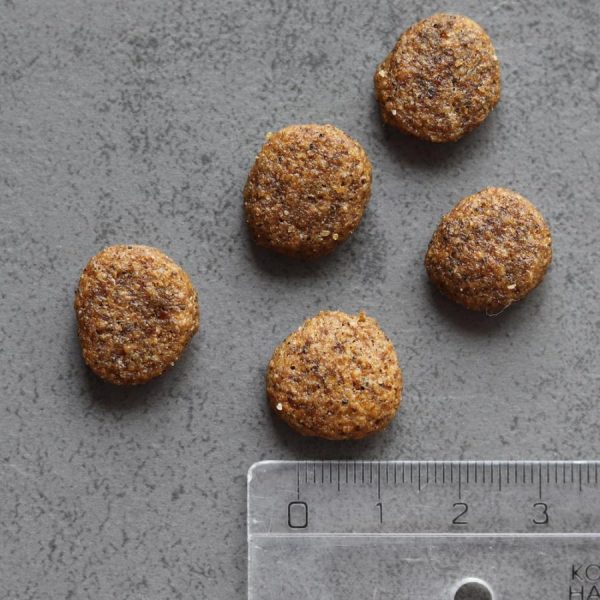 Αναλυτικά συστατικά: ακατέργαστη πρωτεΐνη 26%, ακατέργαστο λίπος 14%, ακατέργαστες ίνες 2,7%, ακατέργαστη τέφρα 7,4%, υγρασία 8%.